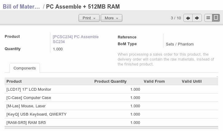 Work Order Operations,version changes and kits. You can use BoM for kits